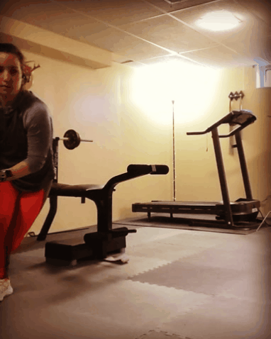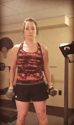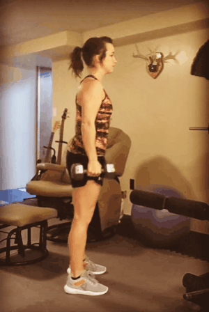 Stand with your feet shoulder-width apart. Bend your knees slightly and keep your back straight for this one. Hold the dumbbell in your right hand and pull it up the side of your body until it almost hits your armpit. Keep the dumbbell close to your body at all times. Your range of motion should be from your knee to your chest.
