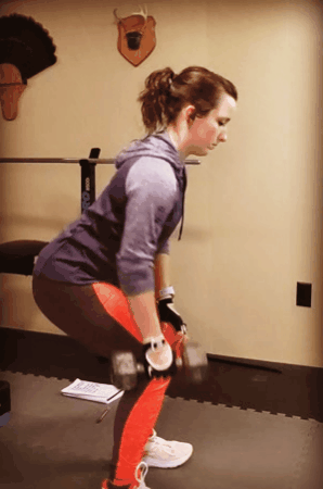 - Get set: Stand with feet shoulder-width apart, toes pointed out, and knees slightly bent; look straight ahead. Hold a kettlebell between your legs using a two-handed, overhand grip.